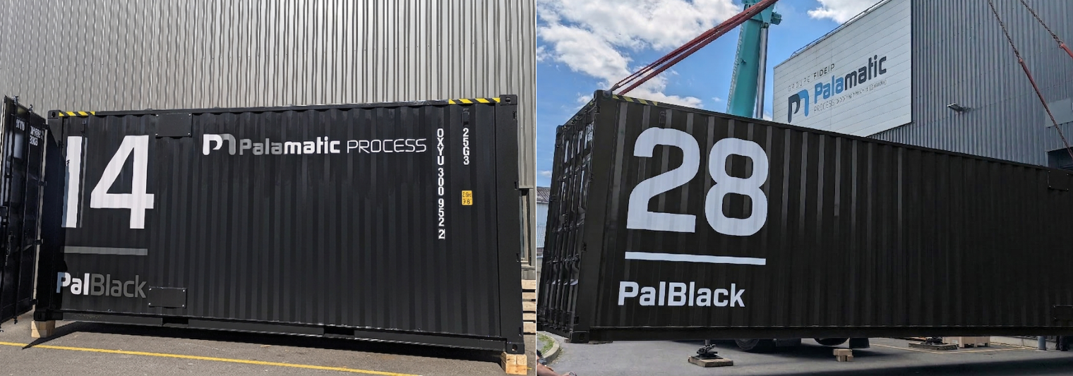 El PalBlack Skid® de Palamatic Process es una unidad de producción robotizada integrada en un contenedor, diseñada para transformar el polvo de carbón bruto en una lechada (slurry) perfectamente homogénea, dosificada con precisión y lista para ser inyectada en su red.