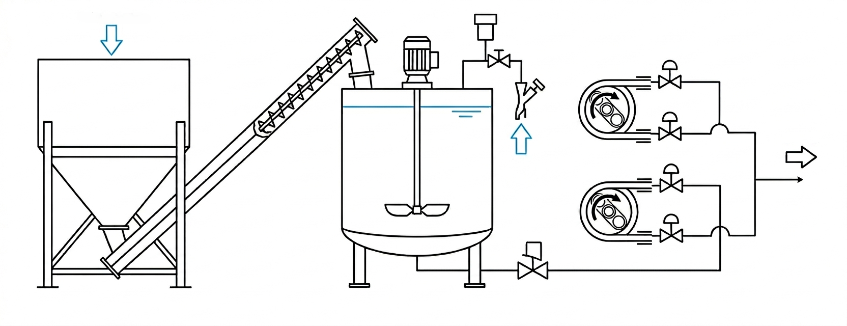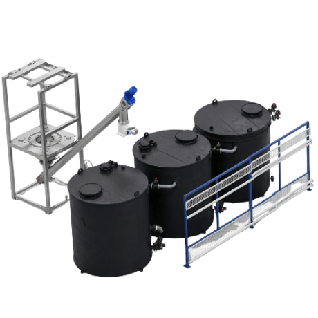 - Vórtice controlado: La cuba de PEHD negro (alta densidad) está equipada con un mezclador de alto poder de cizallamiento y palas antivórtice.