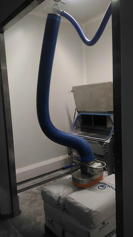 Para reducir la fatiga del operario y las malas posturas, el manipulador tipo Palamatic PL160 permite manipular sin esfuerzo (ingravidez) sacos de 25 a 50 kg hasta la estación de vaciado Sacktip®.
